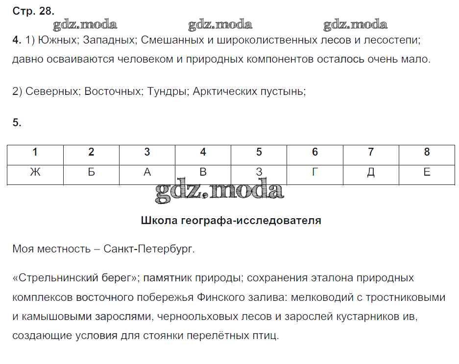 ГДЗ решение к заданию № 28 География 8 класс рабочая тетрадь Пятунин В.Б. Вентана-граф 2017 Часть 1, Часть 2 ФГОС бесплатно на гдз.мода!