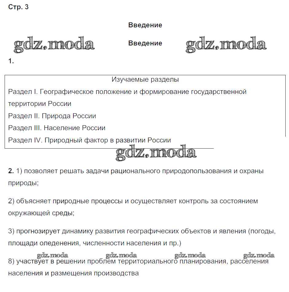 ГДЗ решение к заданию № 3 География 8 класс рабочая тетрадь Пятунин В.Б. Вентана-граф 2017 Часть 1, Часть 2 ФГОС бесплатно на гдз.мода!