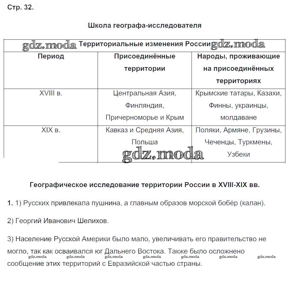 ГДЗ решение к заданию № 32 География 8 класс рабочая тетрадь Пятунин В.Б. Вентана-граф 2017 Часть 1, Часть 2 ФГОС бесплатно на гдз.мода!