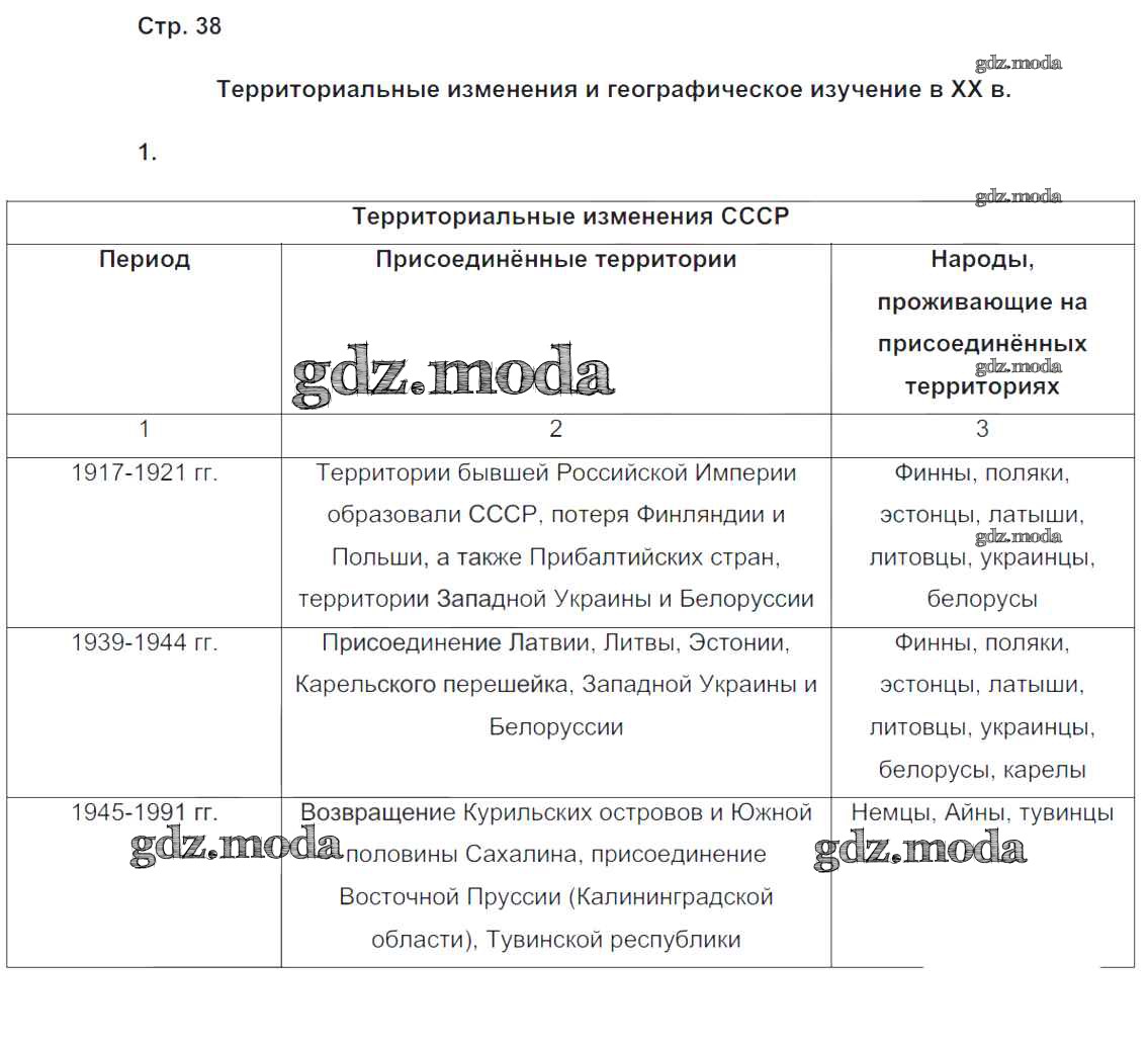 ГДЗ решение к заданию № 38 География 8 класс рабочая тетрадь Пятунин В.Б. Вентана-граф 2017 Часть 1, Часть 2 ФГОС бесплатно на гдз.мода!