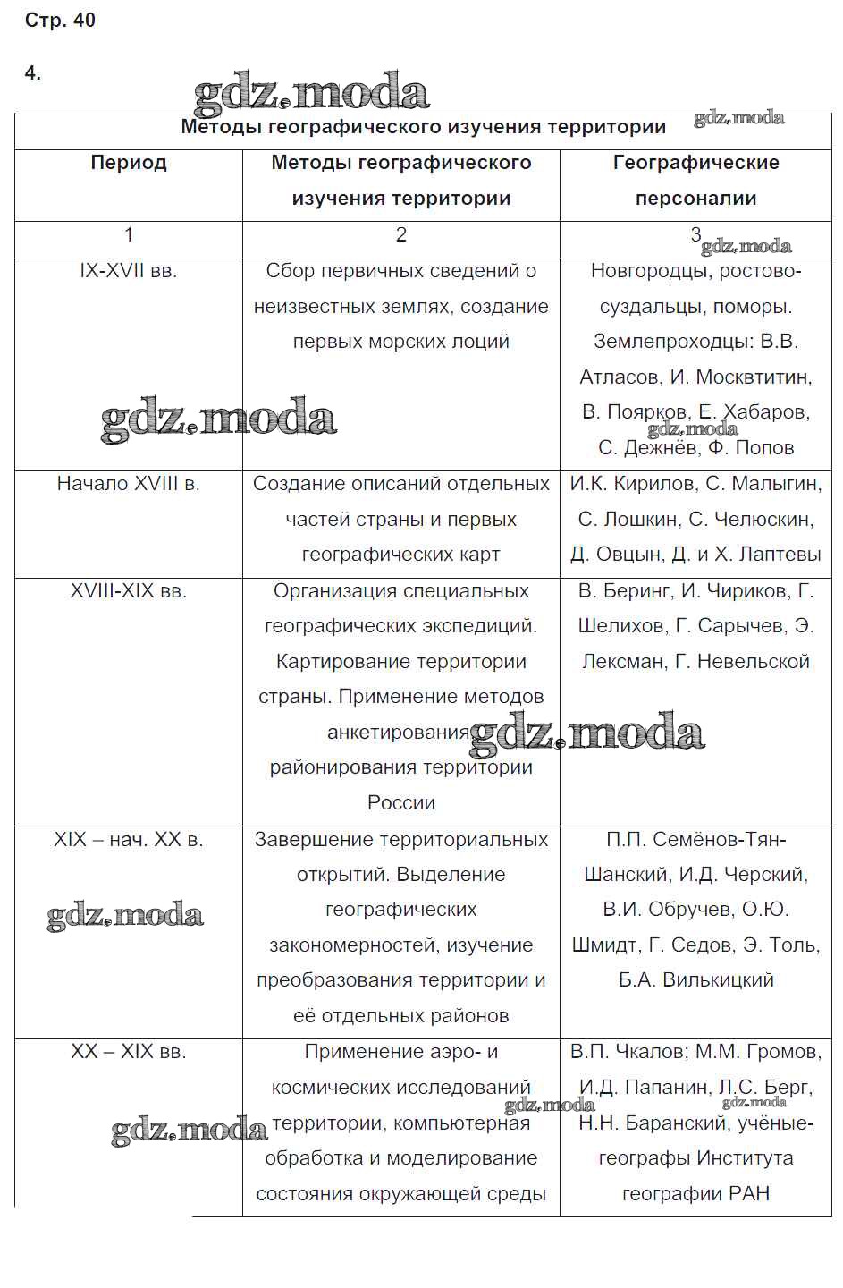 ГДЗ решение к заданию № 40 География 8 класс рабочая тетрадь Пятунин В.Б. Вентана-граф 2017 Часть 1, Часть 2 ФГОС бесплатно на гдз.мода!