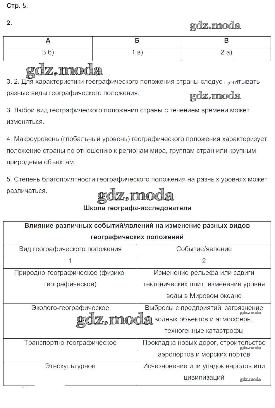 ГДЗ решение к заданию № 5 География 8 класс рабочая тетрадь Пятунин В.Б. Вентана-граф 2017 Часть 1, Часть 2 ФГОС бесплатно на гдз.мода!