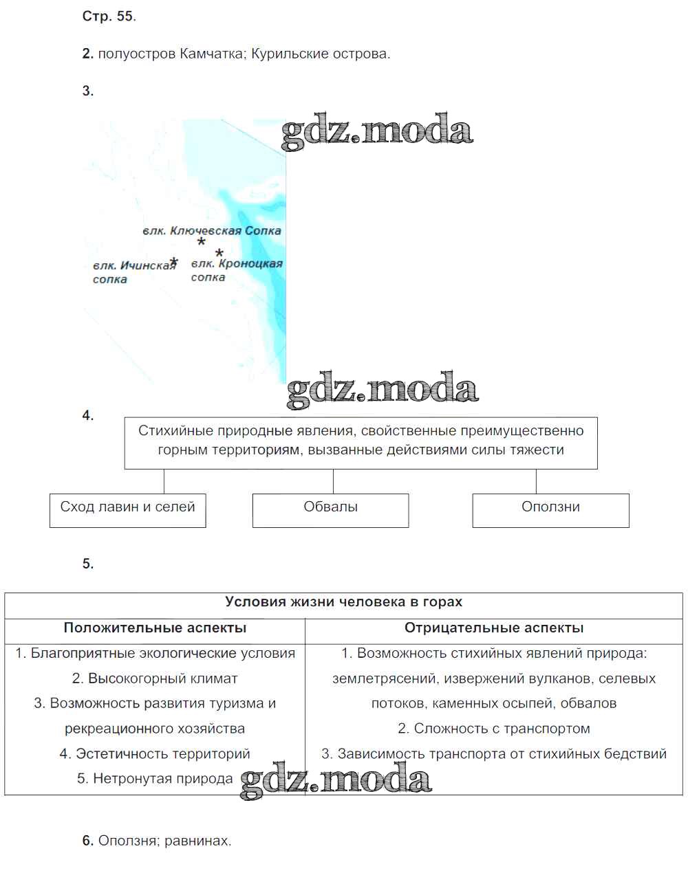 ГДЗ решение к заданию № 55 География 8 класс рабочая тетрадь Пятунин В.Б. Вентана-граф 2017 Часть 1, Часть 2 ФГОС бесплатно на гдз.мода!