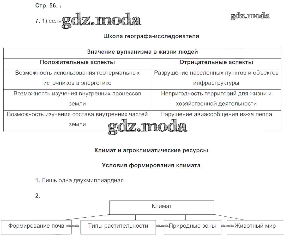 ГДЗ решение к заданию № 56 География 8 класс рабочая тетрадь Пятунин В.Б. Вентана-граф 2017 Часть 1, Часть 2 ФГОС бесплатно на гдз.мода!