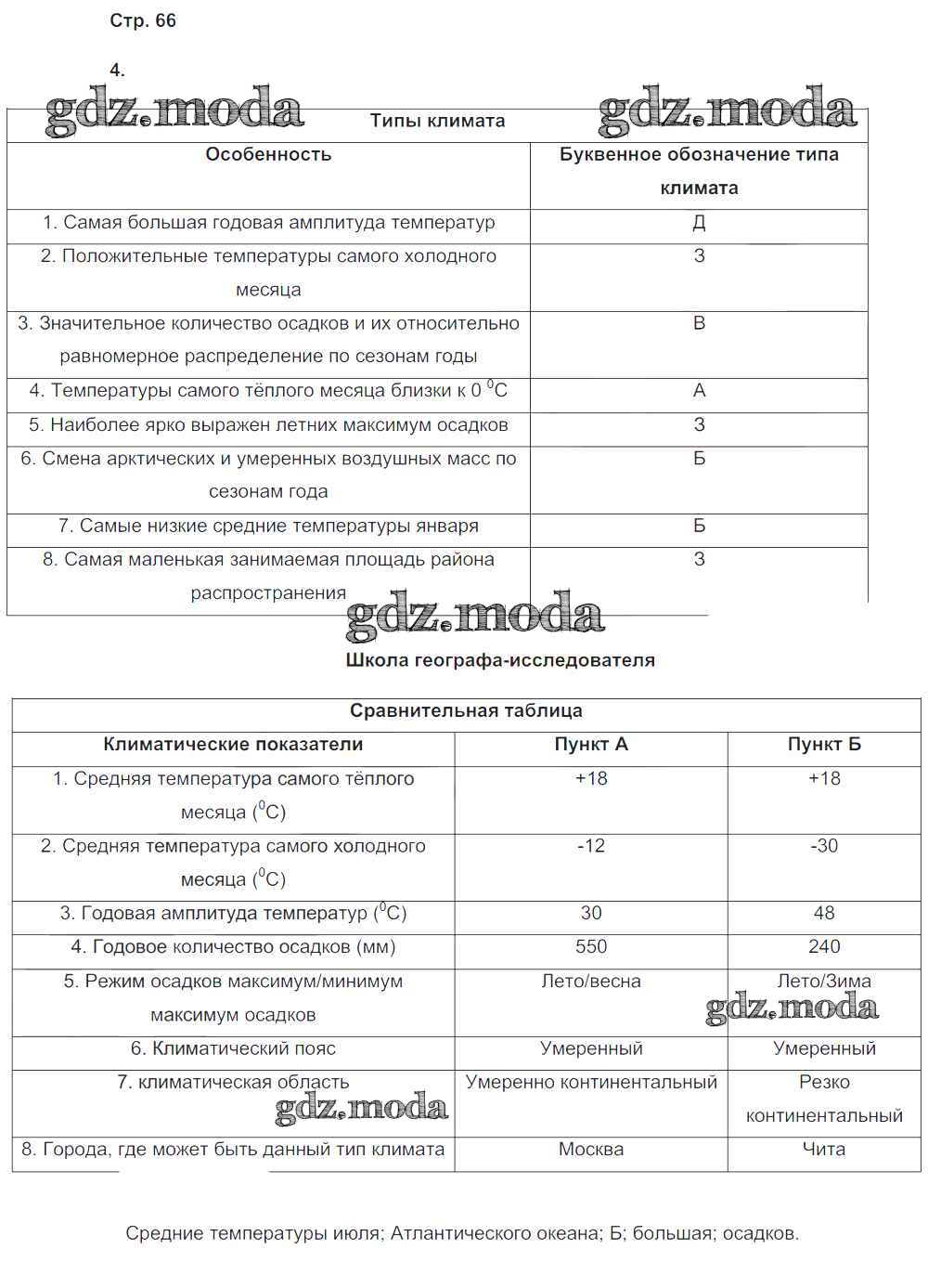 ГДЗ решение к заданию № 66 География 8 класс рабочая тетрадь Пятунин В.Б. Вентана-граф 2017 Часть 1, Часть 2 ФГОС бесплатно на гдз.мода!