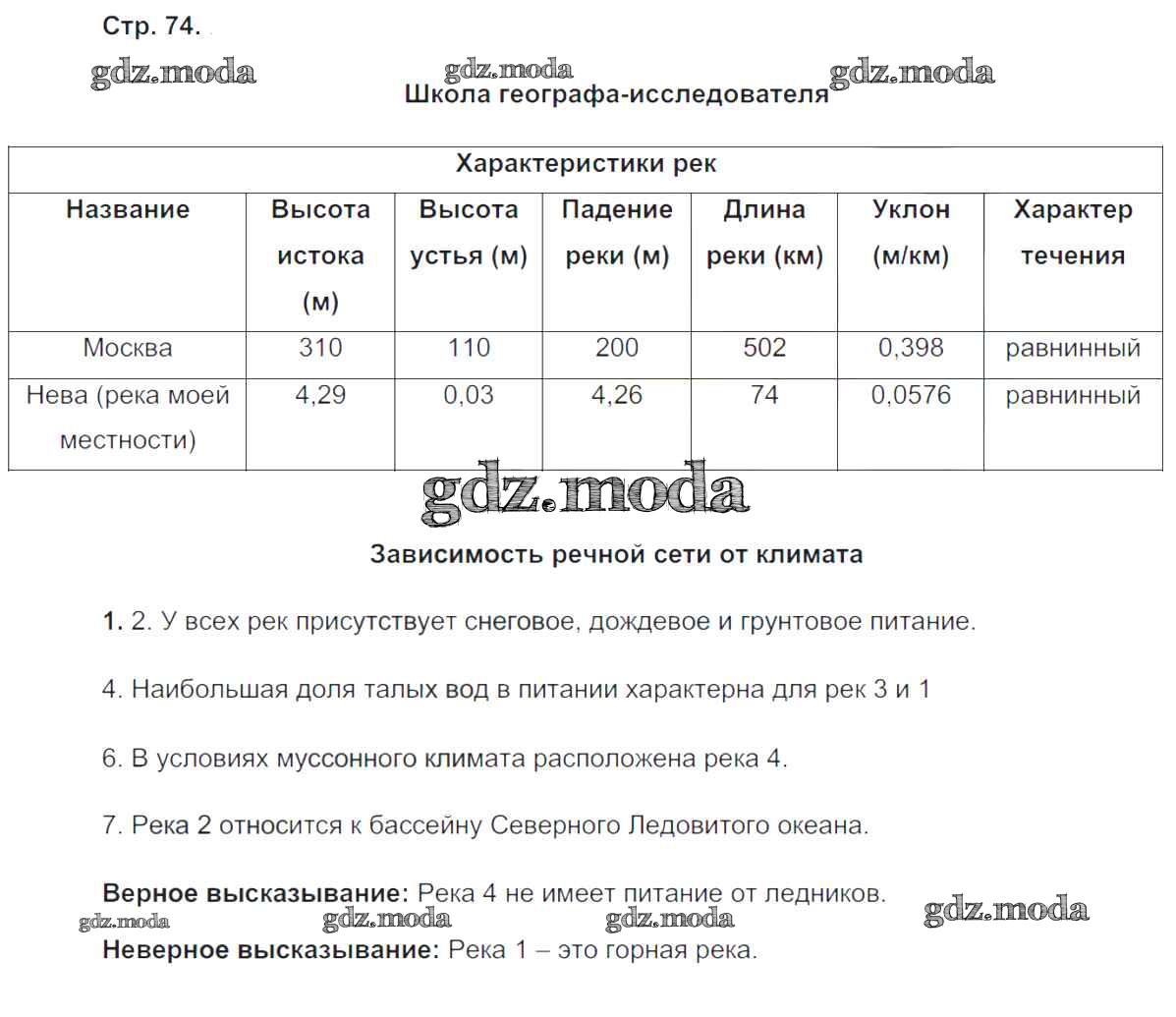 ГДЗ решение к заданию № 74 География 8 класс рабочая тетрадь Пятунин В.Б. Вентана-граф 2017 Часть 1, Часть 2 ФГОС бесплатно на гдз.мода!