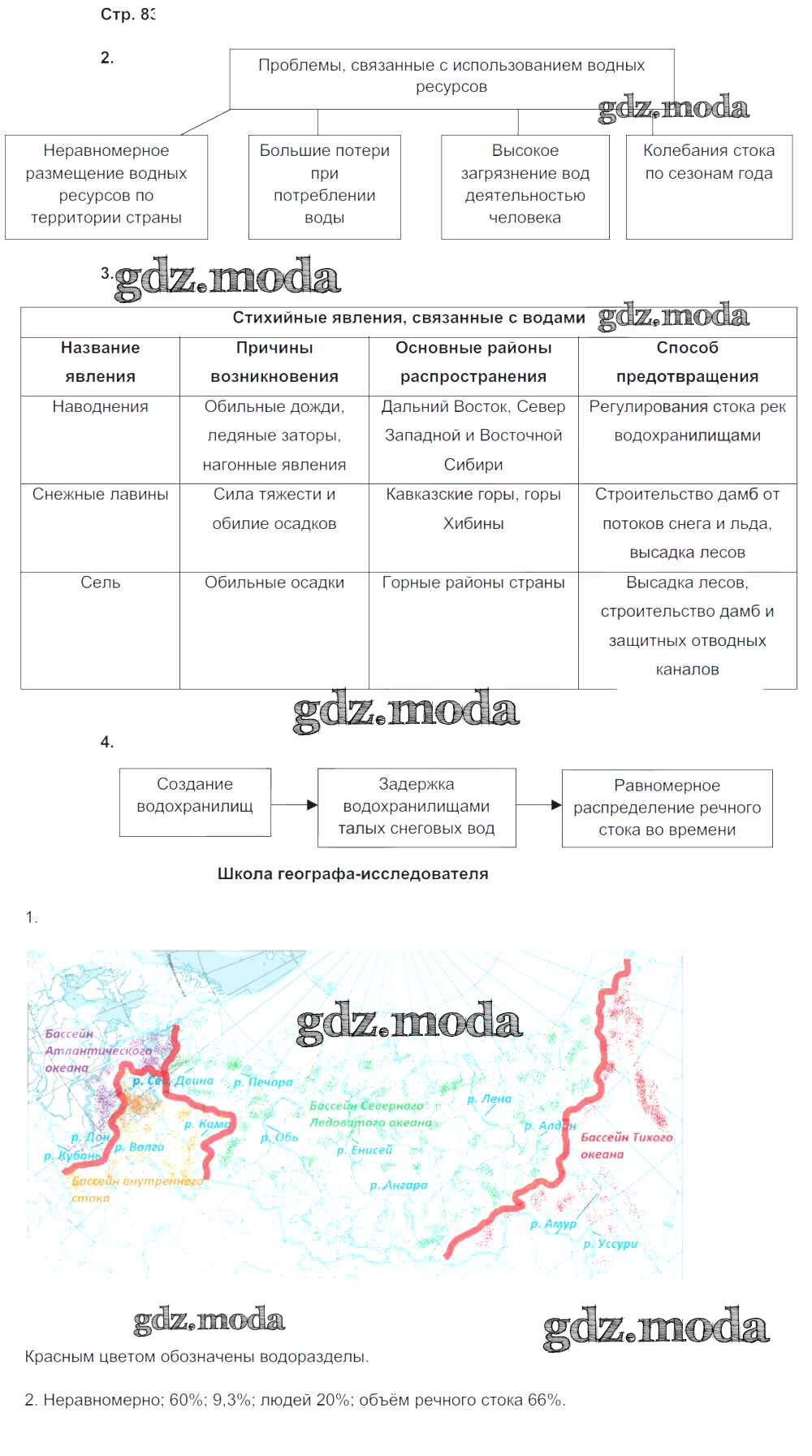 ГДЗ решение к заданию № 83 География 8 класс рабочая тетрадь Пятунин В.Б. Вентана-граф 2017 Часть 1, Часть 2 ФГОС бесплатно на гдз.мода!