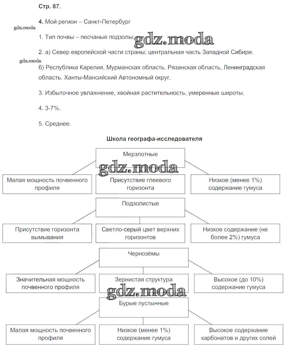 ГДЗ решение к заданию № 87 География 8 класс рабочая тетрадь Пятунин В.Б. Вентана-граф 2017 Часть 1, Часть 2 ФГОС бесплатно на гдз.мода!