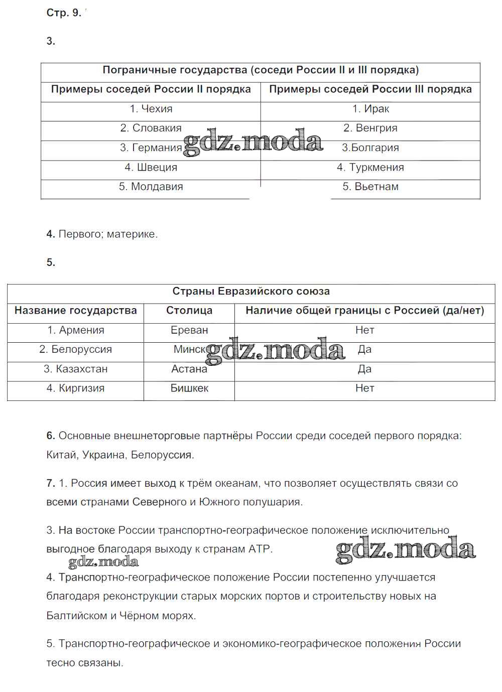 ГДЗ решение к заданию № 9 География 8 класс рабочая тетрадь Пятунин В.Б. Вентана-граф 2017 Часть 1, Часть 2 ФГОС бесплатно на гдз.мода!