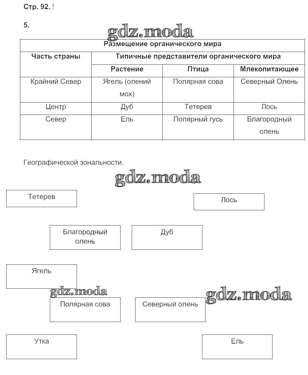 ГДЗ решение к заданию № 92 География 8 класс рабочая тетрадь Пятунин В.Б. Вентана-граф 2017 Часть 1, Часть 2 ФГОС бесплатно на гдз.мода!