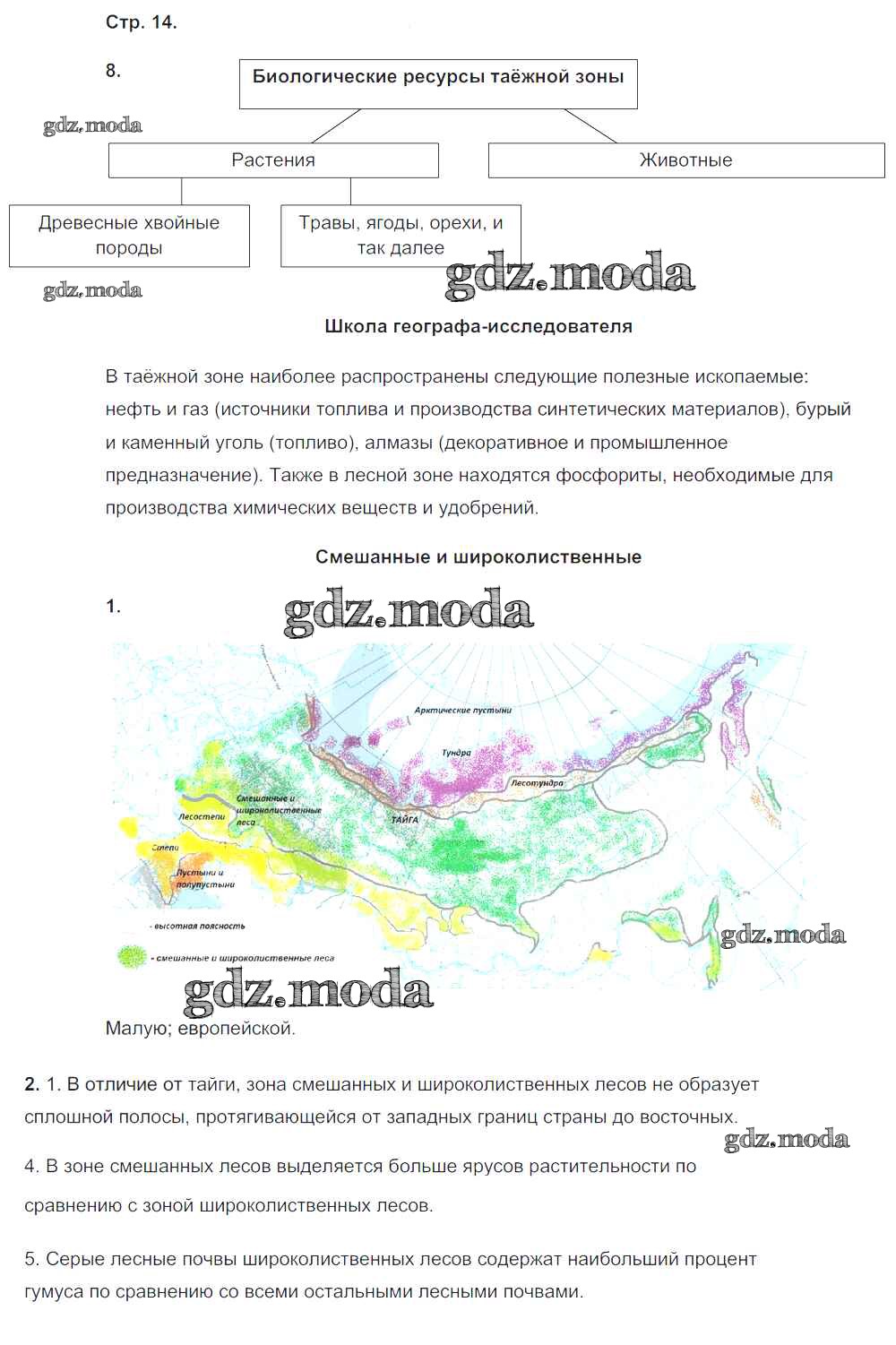 ГДЗ решение к заданию № 14 География 8 класс рабочая тетрадь Пятунин В.Б. Вентана-граф 2017 Часть 1, Часть 2 ФГОС бесплатно на гдз.мода!
