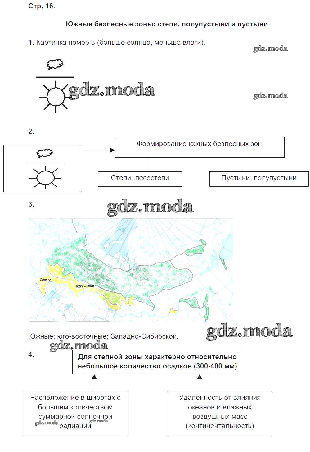 ГДЗ решение к заданию № 16 География 8 класс рабочая тетрадь Пятунин В.Б. Вентана-граф 2017 Часть 1, Часть 2 ФГОС бесплатно на гдз.мода!