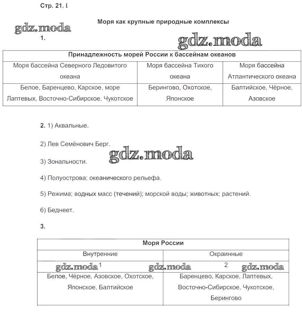 ГДЗ решение к заданию № 21 География 8 класс рабочая тетрадь Пятунин В.Б. Вентана-граф 2017 Часть 1, Часть 2 ФГОС бесплатно на гдз.мода!