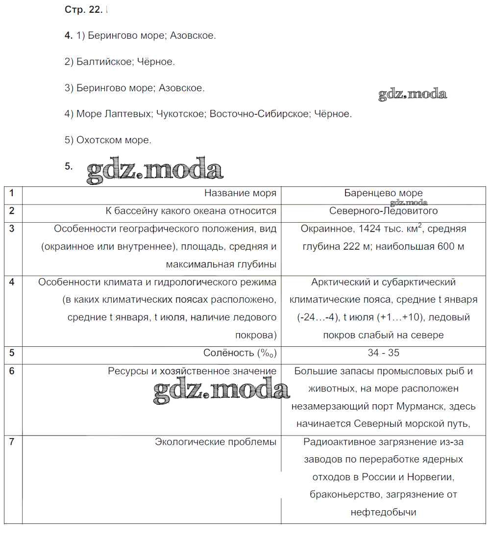 ГДЗ решение к заданию № 22 География 8 класс рабочая тетрадь Пятунин В.Б. Вентана-граф 2017 Часть 1, Часть 2 ФГОС бесплатно на гдз.мода!
