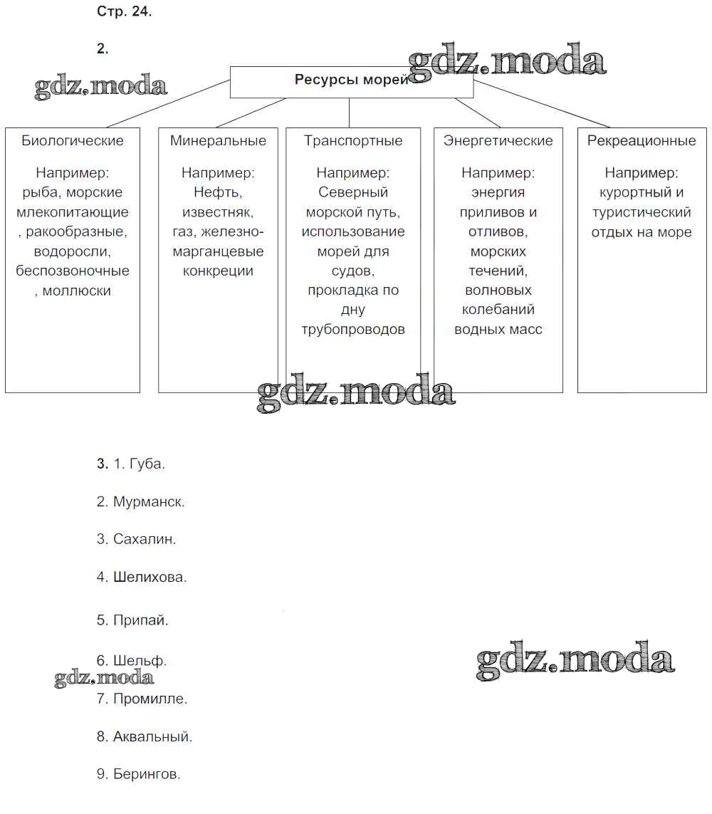 ГДЗ решение к заданию № 24 География 8 класс рабочая тетрадь Пятунин В.Б. Вентана-граф 2017 Часть 1, Часть 2 ФГОС бесплатно на гдз.мода!