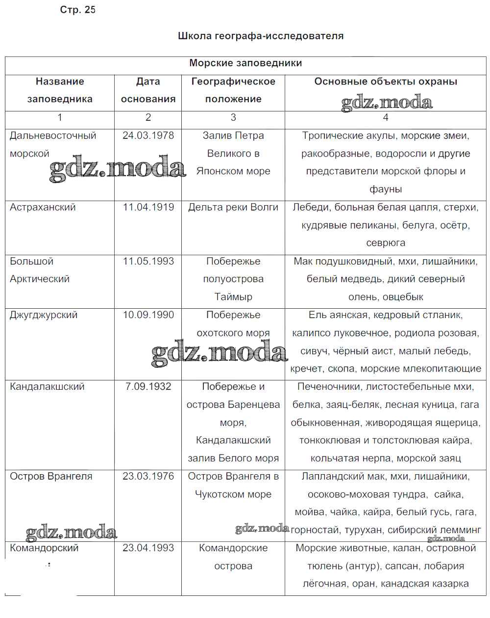 ГДЗ решение к заданию № 25 География 8 класс рабочая тетрадь Пятунин В.Б. Вентана-граф 2017 Часть 1, Часть 2 ФГОС бесплатно на гдз.мода!