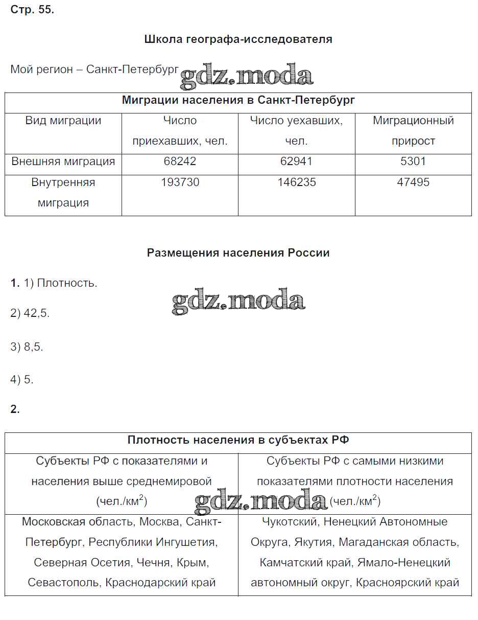 ГДЗ решение к заданию № 55 География 8 класс рабочая тетрадь Пятунин В.Б. Вентана-граф 2017 Часть 1, Часть 2 ФГОС бесплатно на гдз.мода!