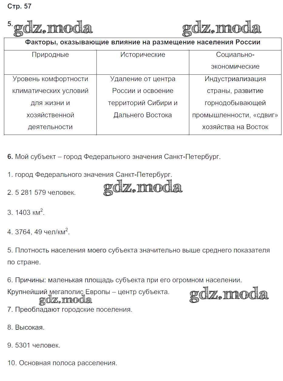 ГДЗ решение к заданию № 57 География 8 класс рабочая тетрадь Пятунин В.Б. Вентана-граф 2017 Часть 1, Часть 2 ФГОС бесплатно на гдз.мода!