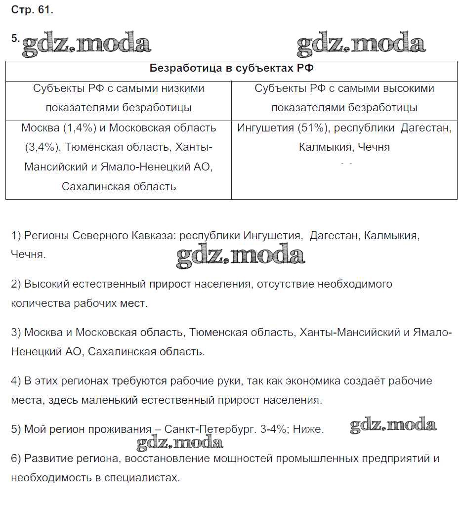 ГДЗ решение к заданию № 61 География 8 класс рабочая тетрадь Пятунин В.Б. Вентана-граф 2017 Часть 1, Часть 2 ФГОС бесплатно на гдз.мода!