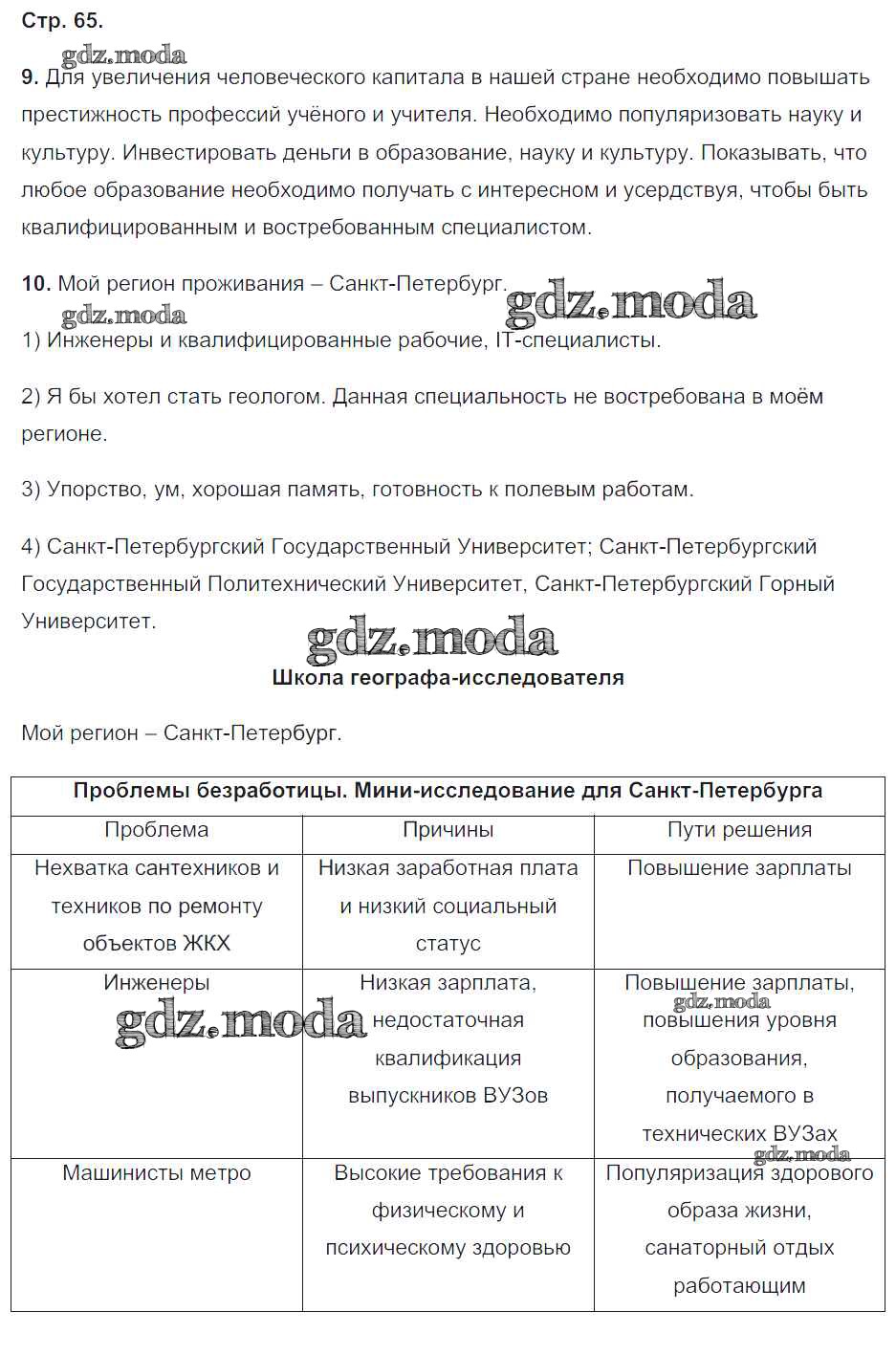 ГДЗ решение к заданию № 65 География 8 класс рабочая тетрадь Пятунин В.Б. Вентана-граф 2017 Часть 1, Часть 2 ФГОС бесплатно на гдз.мода!