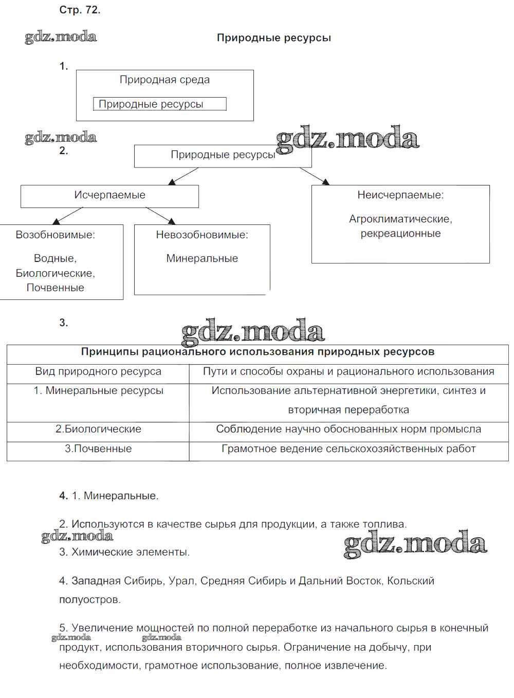 ГДЗ решение к заданию № 72 География 8 класс рабочая тетрадь Пятунин В.Б. Вентана-граф 2017 Часть 1, Часть 2 ФГОС бесплатно на гдз.мода!