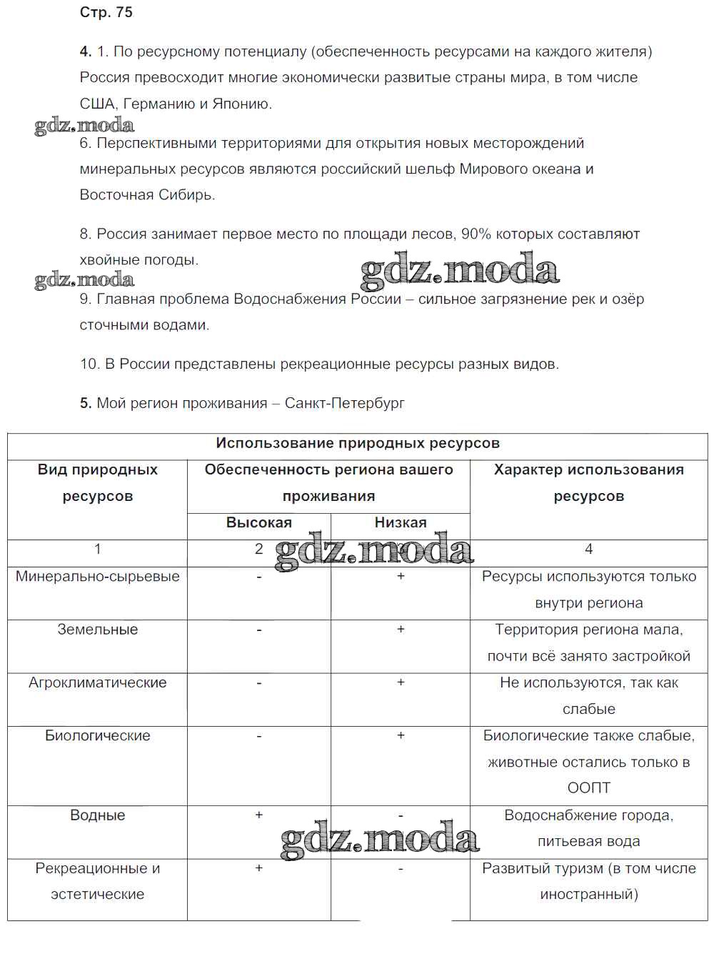 ГДЗ решение к заданию № 75 География 8 класс рабочая тетрадь Пятунин В.Б. Вентана-граф 2017 Часть 1, Часть 2 ФГОС бесплатно на гдз.мода!
