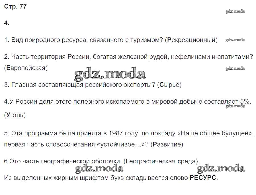 ГДЗ решение к заданию № 77 География 8 класс рабочая тетрадь Пятунин В.Б. Вентана-граф 2017 Часть 1, Часть 2 ФГОС бесплатно на гдз.мода!