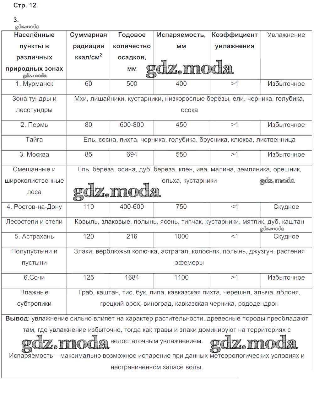 ГДЗ решение к заданию № 12 География 8 класс рабочая тетрадь с контурными картами Сиротин В.И. Дрофа 2020 ФГОС бесплатно на гдз.мода!