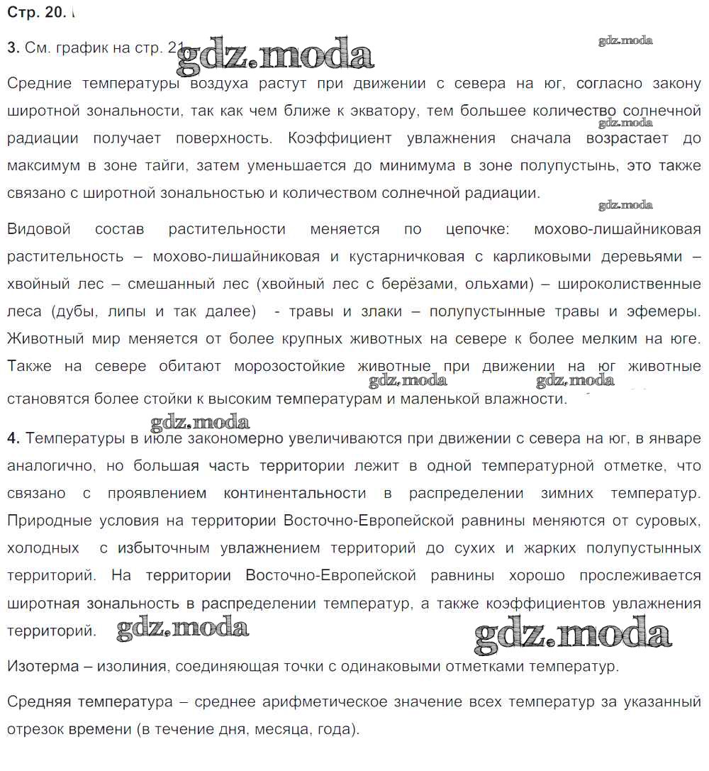 ГДЗ решение к заданию № 20 География 8 класс рабочая тетрадь с контурными картами Сиротин В.И. Дрофа 2020 ФГОС бесплатно на гдз.мода!