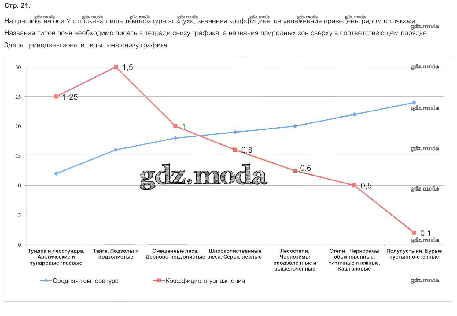ГДЗ решение к заданию № 21 География 8 класс рабочая тетрадь с контурными картами Сиротин В.И. Дрофа 2020 ФГОС бесплатно на гдз.мода!