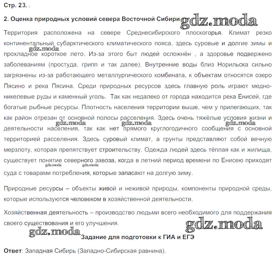 ГДЗ решение к заданию № 23 География 8 класс рабочая тетрадь с контурными картами Сиротин В.И. Дрофа 2020 ФГОС бесплатно на гдз.мода!