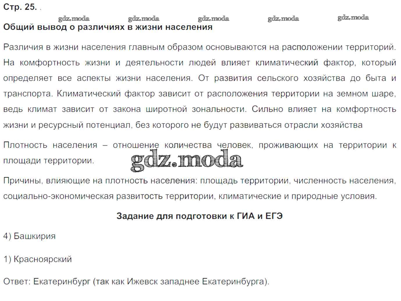ОТВЕТ на задание № 25 Рабочая тетрадь по Географии 8 класс Сиротин
