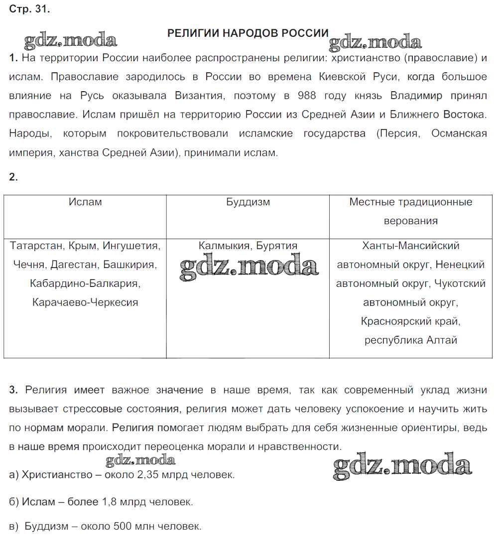 ГДЗ решение к заданию № 31 География 8 класс рабочая тетрадь с контурными картами Сиротин В.И. Дрофа 2020 ФГОС бесплатно на гдз.мода!