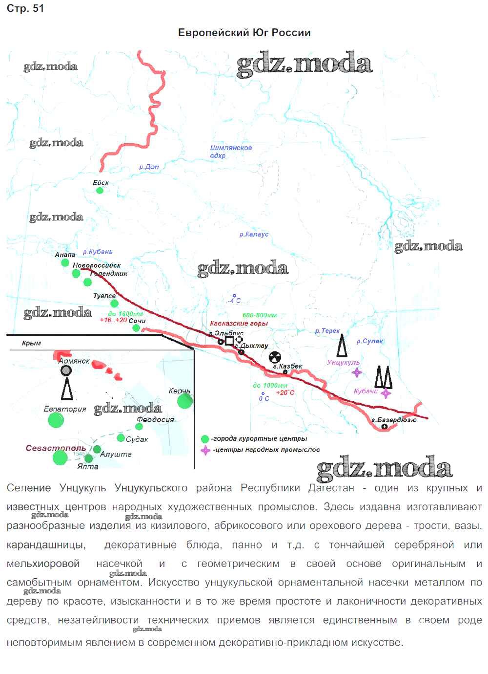 ГДЗ решение к заданию № 51 География 8 класс рабочая тетрадь с контурными картами Сиротин В.И. Дрофа 2020 ФГОС бесплатно на гдз.мода!