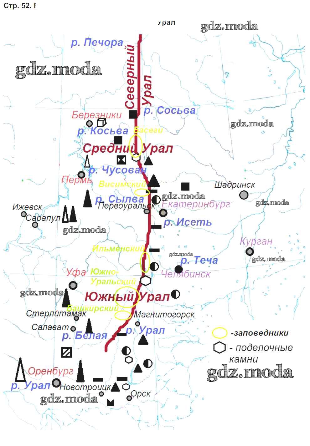 ГДЗ решение к заданию № 52 География 8 класс рабочая тетрадь с контурными картами Сиротин В.И. Дрофа 2020 ФГОС бесплатно на гдз.мода!