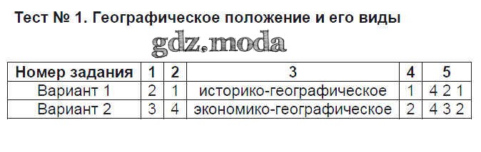 ОТВЕТ на задание № 1 Тесты по Географии 8 класс Пятунина УМК