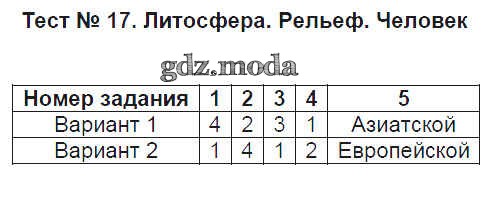 ОТВЕТ на задание № 17 Тесты по Географии 8 класс Пятунина УМК