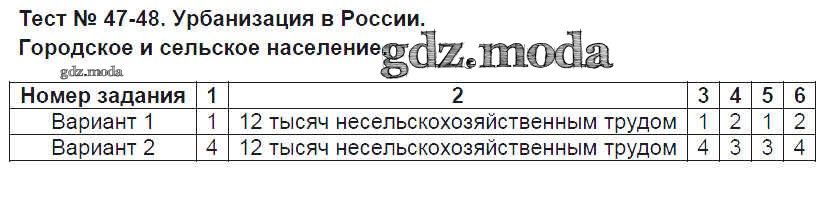 ГДЗ решение к заданию № 47-48 География 8 класс тесты Пятунина В.Б. Экзамен 2017 ФГОС бесплатно на гдз.мода!