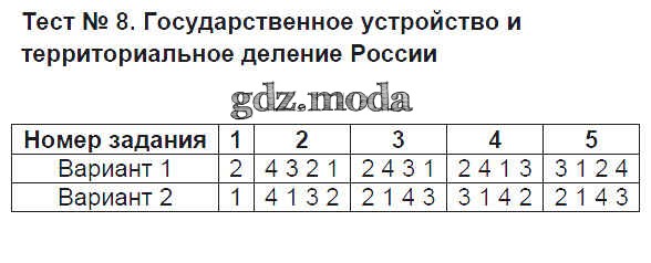 ГДЗ решение к заданию № 8 География 8 класс тесты Пятунина В.Б. Экзамен 2017 ФГОС бесплатно на гдз.мода!