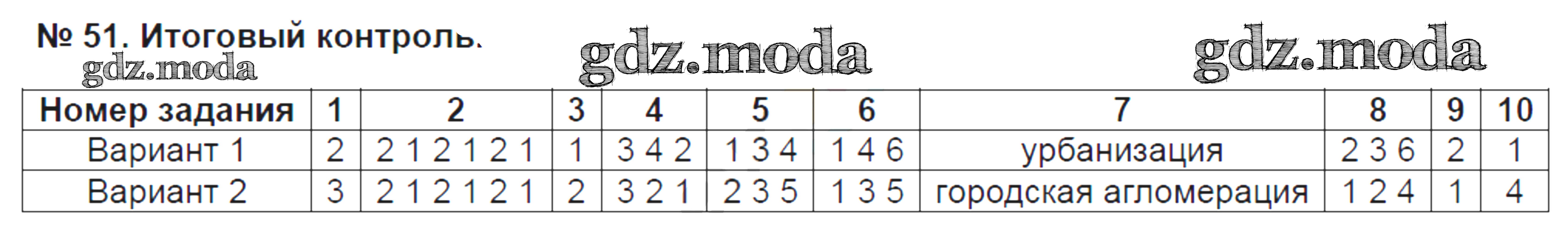 ГДЗ решение к заданию № 51 География 8 класс тесты Пятунина В.Б. Экзамен 2017 ФГОС бесплатно на гдз.мода!