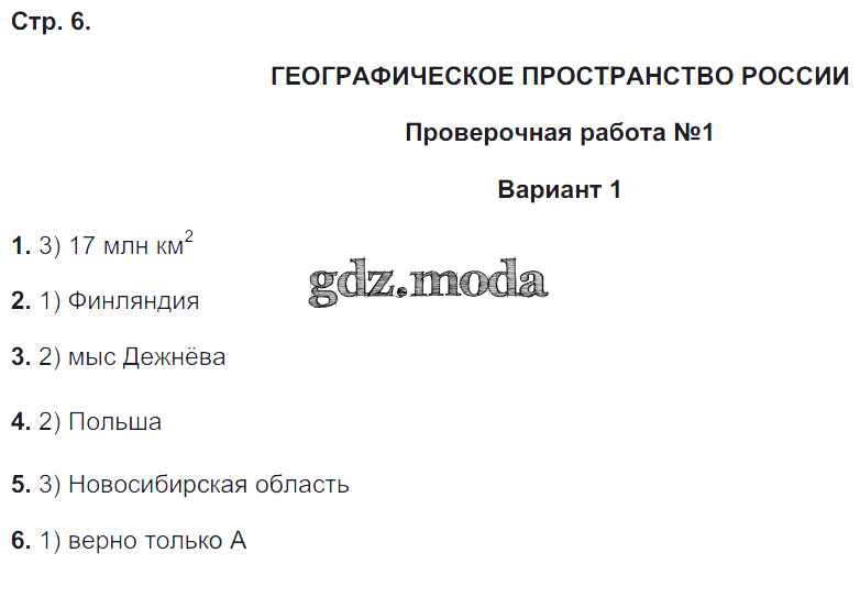 ГДЗ решение к заданию № 6 География 8 класс тетрадь-экзаменатор Барабанов В.В. Просвещение 2016 ФГОС бесплатно на гдз.мода!