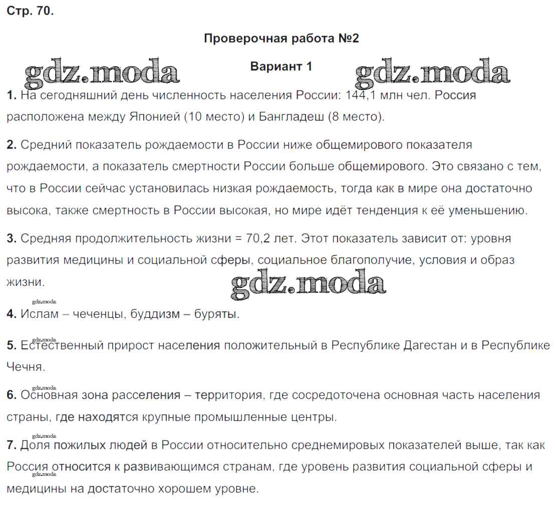 ГДЗ решение к заданию № 70 География 8 класс тетрадь-экзаменатор Барабанов В.В. Просвещение 2016 ФГОС бесплатно на гдз.мода!