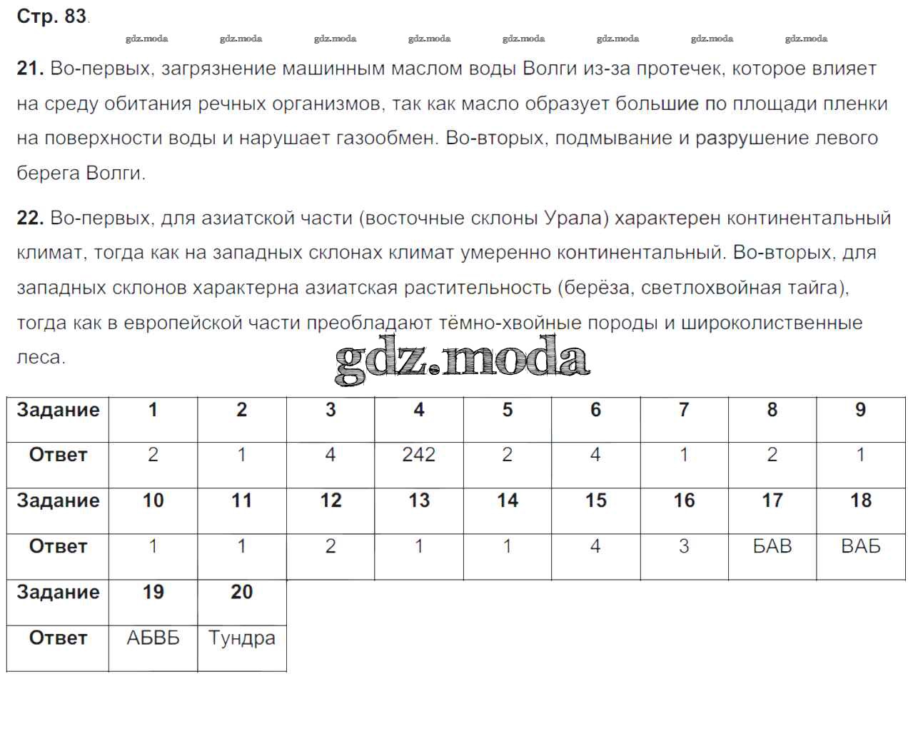 ГДЗ решение к заданию № 83 География 8 класс тетрадь-экзаменатор Барабанов В.В. Просвещение 2016 ФГОС бесплатно на гдз.мода!