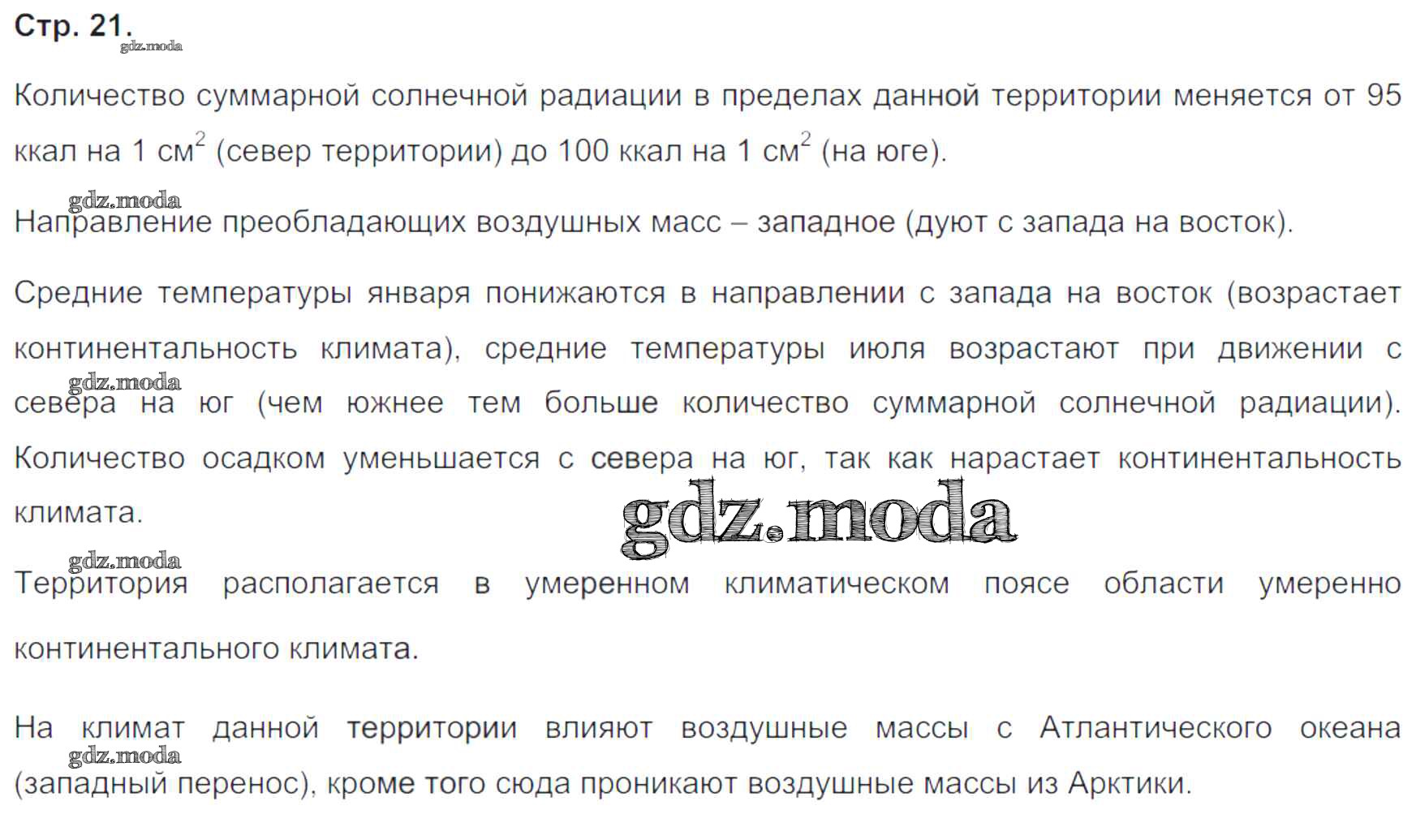 ГДЗ решение к заданию № 21 География 8 класс тетрадь-практикум Ходова Е.С. Просвещение 2016 ФГОС бесплатно на гдз.мода!