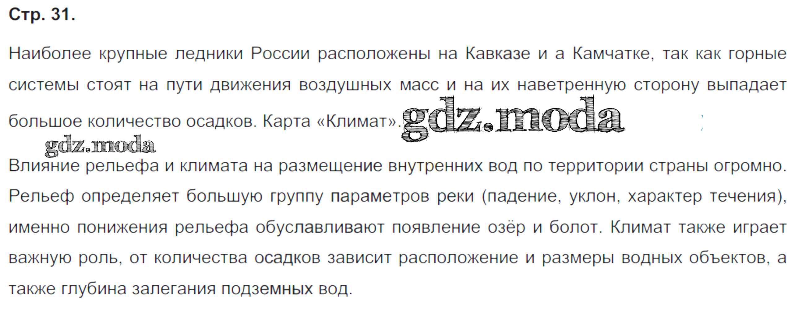 ГДЗ решение к заданию № 31 География 8 класс тетрадь-практикум Ходова Е.С. Просвещение 2016 ФГОС бесплатно на гдз.мода!