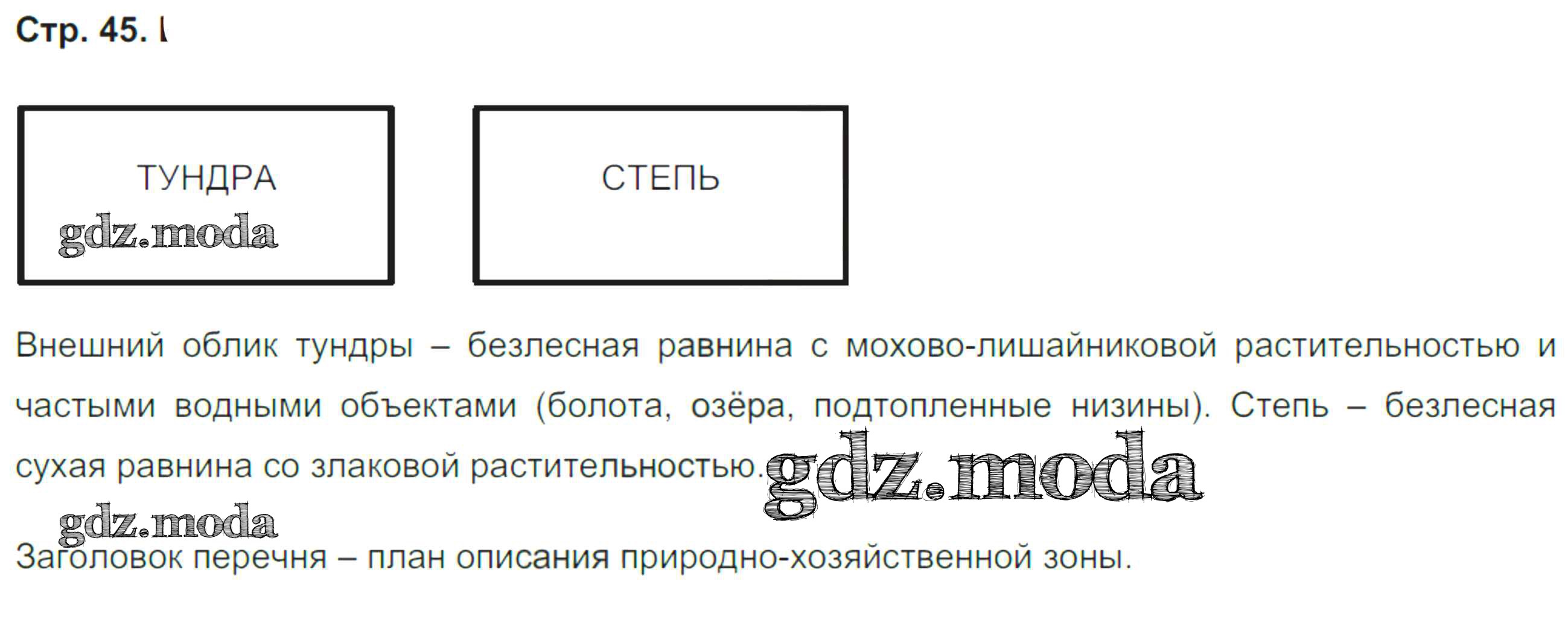 ГДЗ решение к заданию № 45 География 8 класс тетрадь-практикум Ходова Е.С. Просвещение 2016 ФГОС бесплатно на гдз.мода!