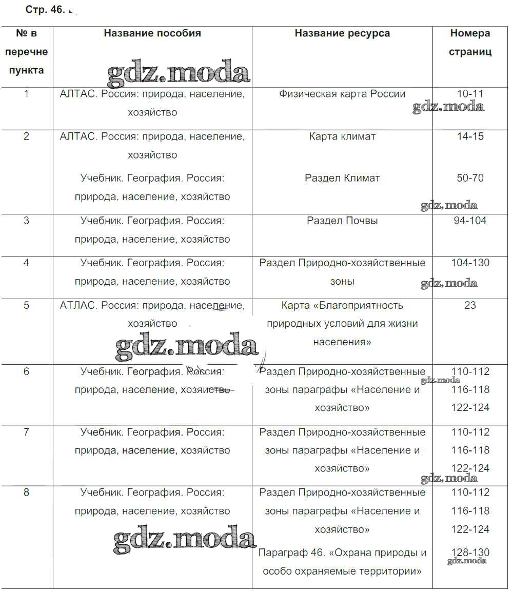 ГДЗ решение к заданию № 46 География 8 класс тетрадь-практикум Ходова Е.С. Просвещение 2016 ФГОС бесплатно на гдз.мода!