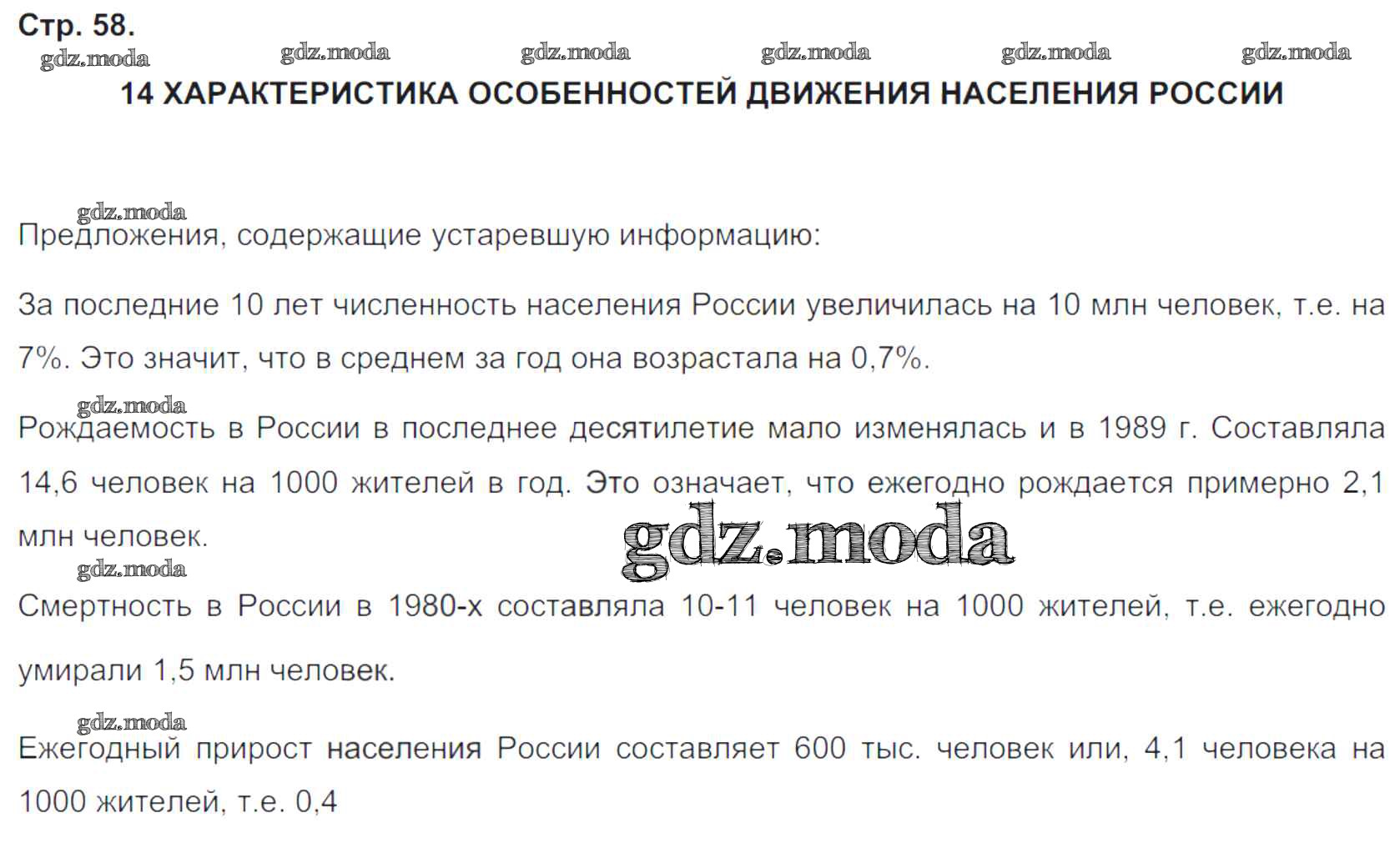 ГДЗ решение к заданию № 58 География 8 класс тетрадь-практикум Ходова Е.С. Просвещение 2016 ФГОС бесплатно на гдз.мода!