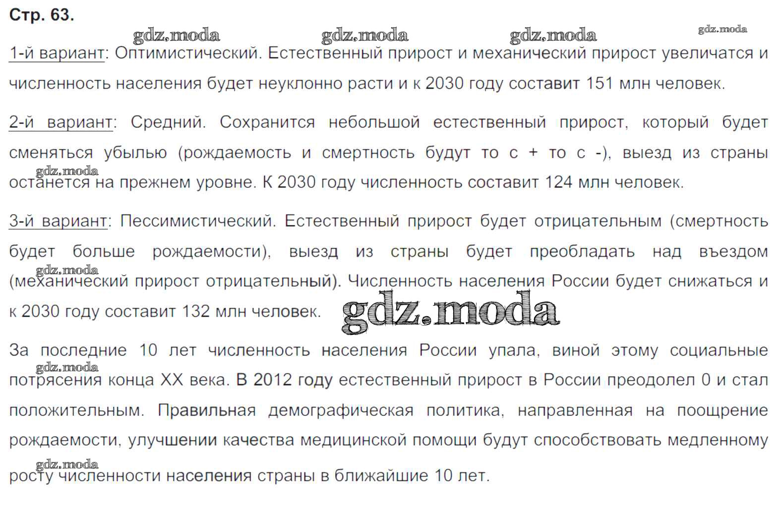 ГДЗ решение к заданию № 63 География 8 класс тетрадь-практикум Ходова Е.С. Просвещение 2016 ФГОС бесплатно на гдз.мода!