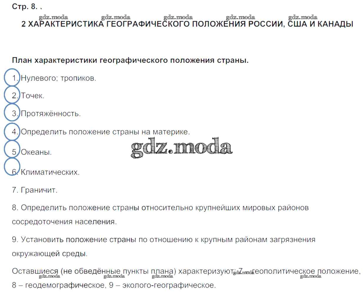 ГДЗ решение к заданию № 8 География 8 класс тетрадь-практикум Ходова Е.С. Просвещение 2016 ФГОС бесплатно на гдз.мода!